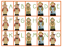 from Mrs. Kim Adsit and her Fall Literacy Game Pack and I had planned on using it last week but just never got to it. So, Sunday evening around 7ish I made the connection between the 2 - SCARECROWS!! I know - I'm a little slow! LOL!!! This connection led me to a big hunt through all the rest of my fall stuff I had acquired over the past few weeks. I found a few things, but I made a few things too!! You know what that means for you???? FREEBIES!! Yippeeeeee!!!! Here they are!